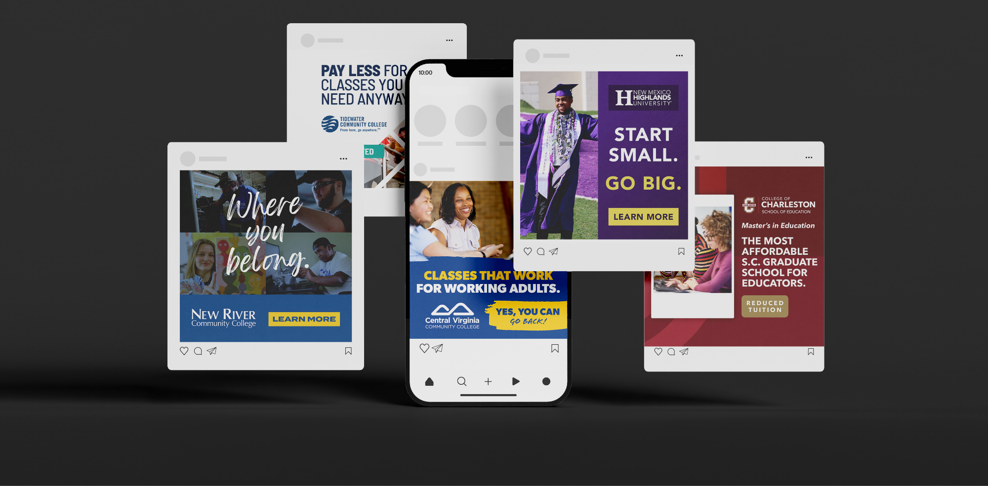 Our team brings decades of higher education marketing expertise, along with talent that has led some of the nation’s top creative campaigns for household name brands. We merge these forces with a passion for education to create a strategy that’s laser focused on students who are most likely to succeed at your institution.